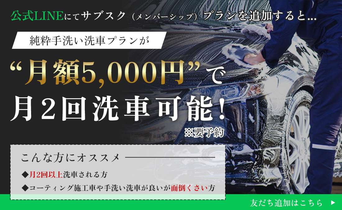 | 純水洗車 | ¥2,500 | ¥2,750 | ¥3,300 | ¥3,300 | ¥3,850 | ¥4,400 |